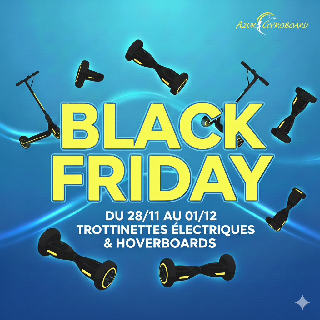 Profitez des promotions et réductions du Black Friday sur certains Hoverboard et trottinettes électrique dans l'espace de notre magasin et boutique Azur Gyroboard.